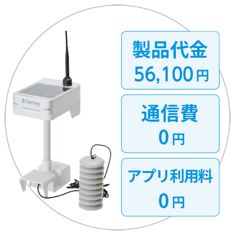 ハウスの中央など計測したい場所にファーモ本体を設置し、スイッチをONにします。