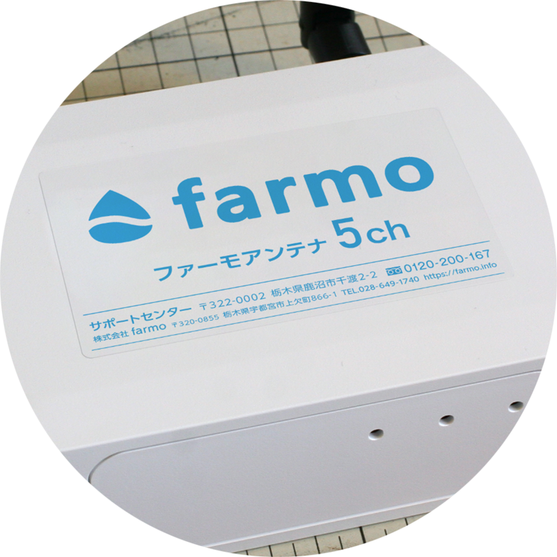 つきましては、ハウスファーモ及び露地ファーモの追加購入をいただく際は、以下にありますシール(見本)がハウスファーモ、露地ファーモ、通信機(ハウスファーモの場合)に貼付されているかをご確認いただきますようお願いいたします。